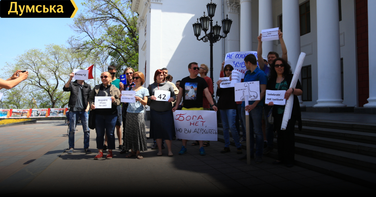 Марш агностиков и атеистов против клерикализма, который насаждает мэрия Одессы, прошел сегодня в центре города.