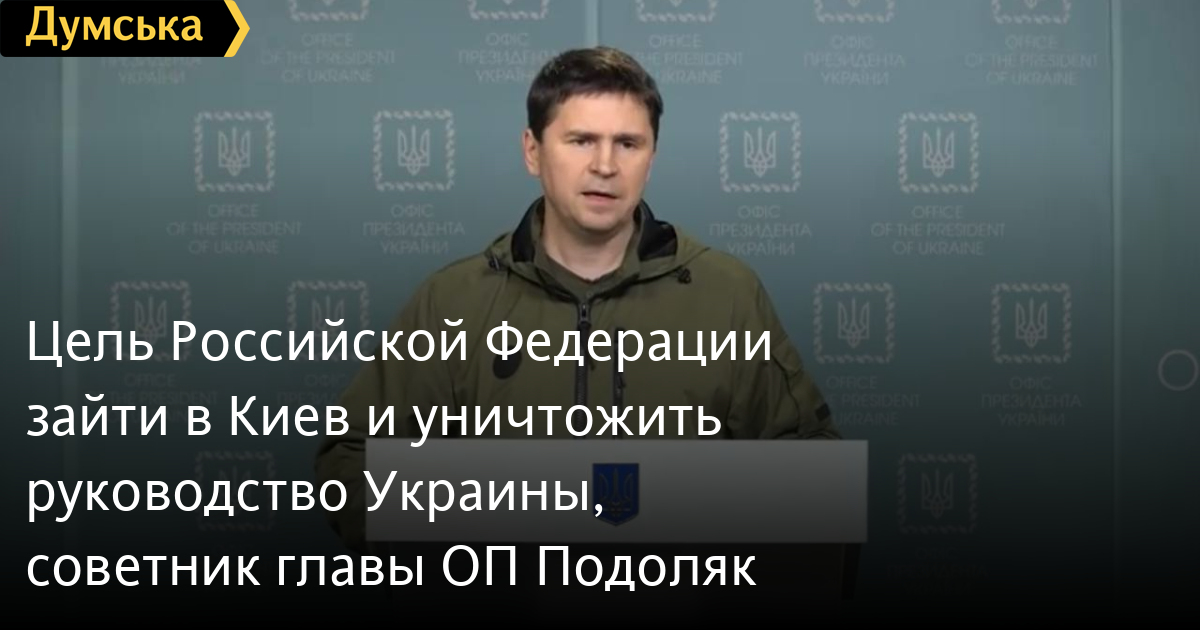 Единственная цель — зайти в Киев и уничтожить руководство Украины, уничтожить лично президента Владимира Зеленского.
