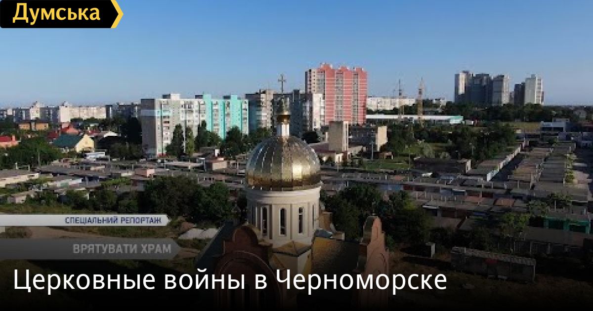 Церковь-вагончик — единственный храм Православной Церкви Украины в Черноморске. Рядом строят новую церковь. местные жалуются, в последнее время храмы подвергаются частым нападениям. Верующие обратились за помощью к партии Европейская Солидарность.