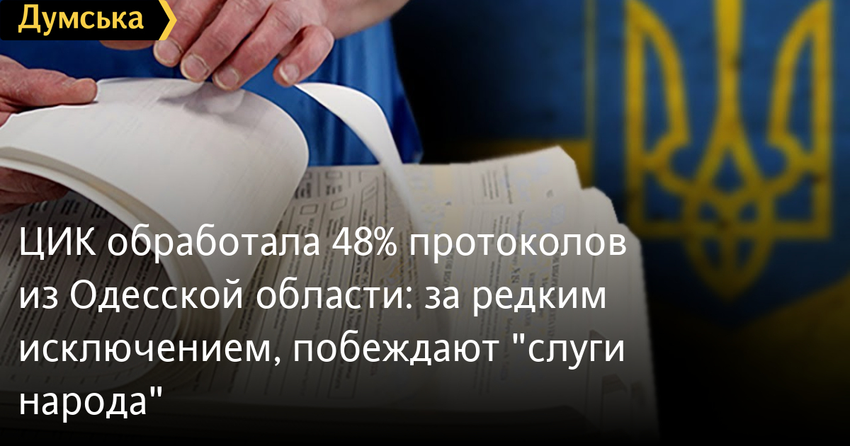 ЦИК обработала 48% протоколов из Одесской области: за редким исключением, побеждают «слуги народа»