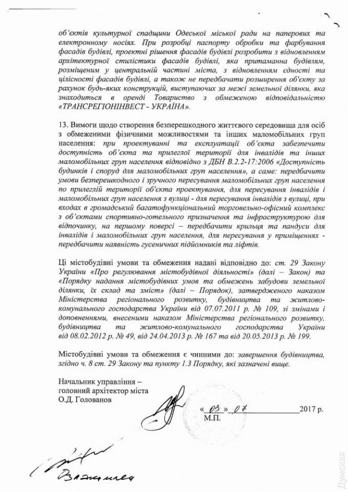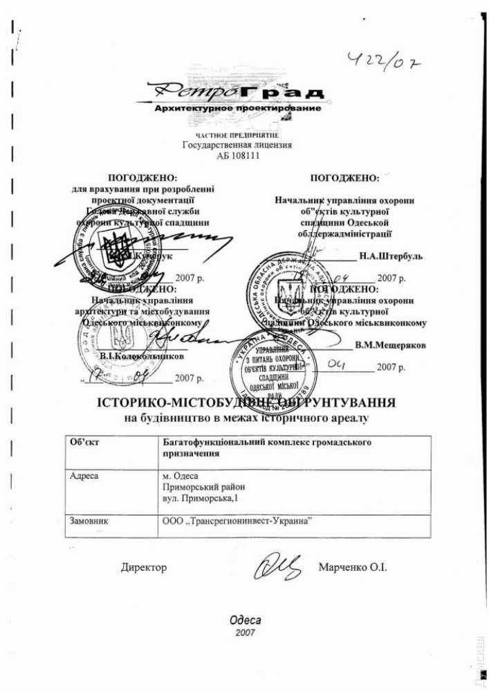 Отметим, что застройщик явно учел критические замечания, высказанные по поводу первого проекта. Во-первых, он уменьшил высоту здания с 12 до 9 этажей, во-вторых, сдвинул самую высокую часть в сторону Таможенной, чтобы не перекрывать вид с Приморского бульвара. Объект обрел форму изящной ступенчатой пирамиды (первоначально планировалась примитивная коробка). Предусмотрена довольно вместительная парковка. А еще строительство не предполагает сноса старых зданий на Ланжероновской лестнице.