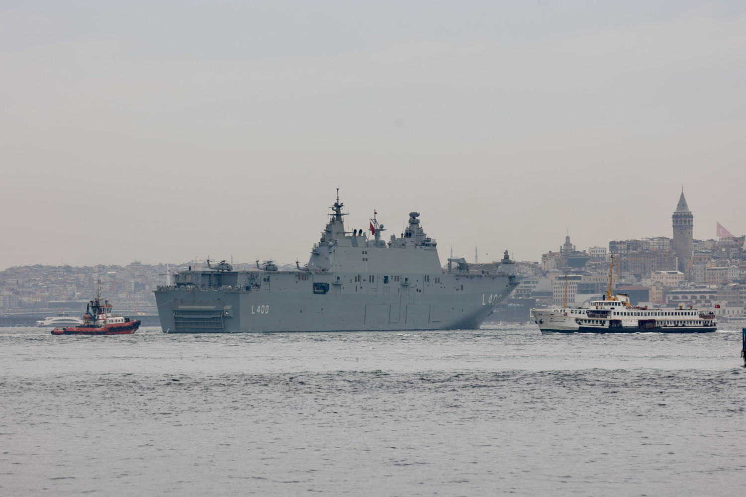Турецькі ВМС показали новітній десантний корабель: на палубі розміщено безпілотник з українськими двигунамиСвій новітній десантний корабель TCG Anadolu вперше показали Військово-морські сили Турецької республіки. Після урочистої здачі в експлуатацію 10 квітня цього року, увечері 16 квітня він здійснив свій перший показовий перехід до Стамбула, ставши на якір біля узбережжя. TCG Anadolu з бортовим кодом L400 являє собою універсальний десантний корабель з верхньою польотною палубою, оснащеною трампліном для авіації. По суті, це легкий авіаносець, який може здійснювати десантні операції. Атака узбережжя противника може відбуватися за допомогою десантно-штурмових амфібій, десантних катерів і кораблів на повітряній подушці з морськими піхотинцями на борту. Спочатку, крім десантних вертольотів типу CH-47 «Чинук», на ньому планували розмістити американські літаки F-35, однак після відмови США поставляти їх, турецькі військові вирішили зробити ставку на власні сили. Наразі на польотній палубі розміщено штурмові гелікоптери та новітні версії безпілотників — гвинтового, типу Bayraktar, і дослідний зразок безпілотного винищувача Kızılelma, оснащеного українськими авіаційними двигунами АІ-322Ф компанії «Івченко-Прогрес». Довжина десантника L400 — 232 метри, ширина по польотній палубі — 32 метри, висота — 58 метрів, осадка сім метрів. Повна швидкість ходу в режимі «десантний корабель» — 21 вузол, у режимі «легкий авіаносець» — 29 вузлів. Введено в експлуатацію 10 квітня 2023 року. СМЕРТЬ РОСІЙСЬКИМ ОКУПАНТАМ! Помітили помилку? Виділяйте слова з помилкою та натискайте control-enter |