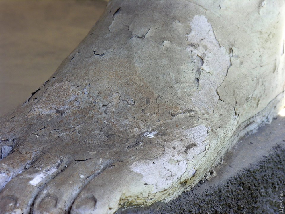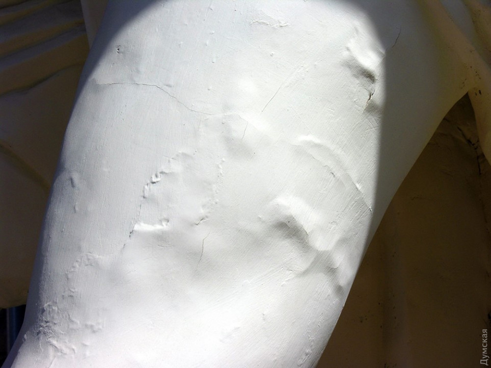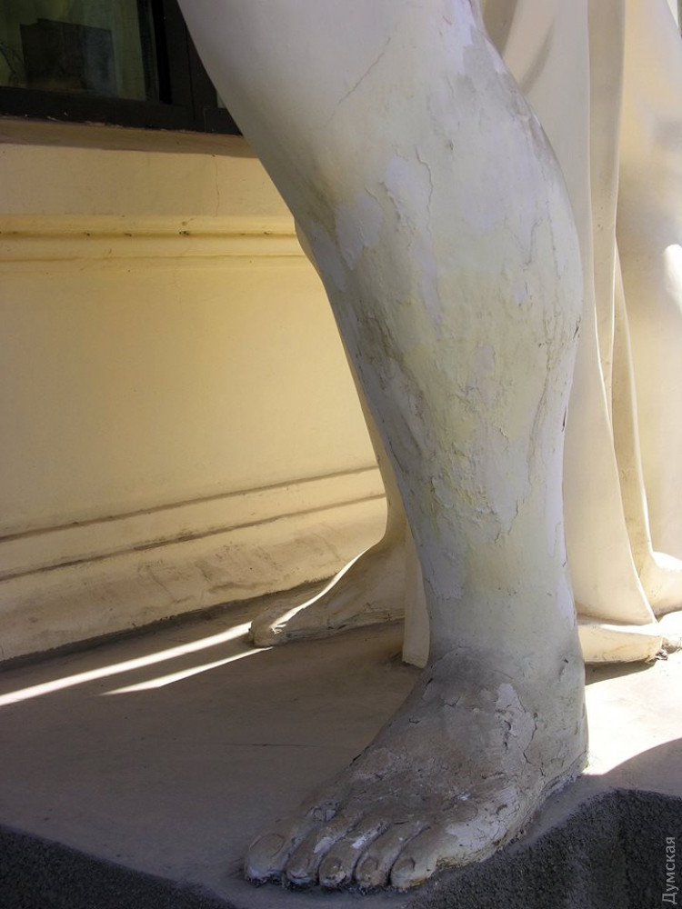 Балкон и скульптурная композиция знаменитого Дома с атлантами (дома Фальц-Фейна), что под номером 7 на улице Гоголя, начали осыпаться спустя полтора года после реставрации.