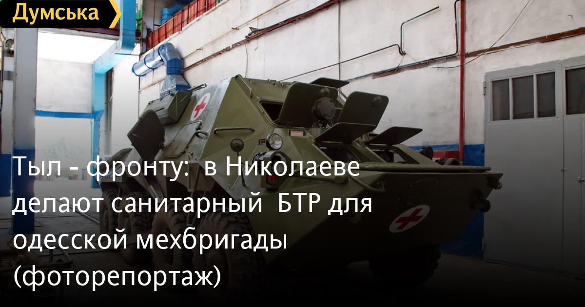 27 августа одесситы из организации «Большая Одесса» заказали на Николаевском бронетанковом заводе изготовление боевой медицинской машины на базе бронетранспортера БТР-70 для 28-й механизированной бригады. Согласно подписанному договору, машина будет готова в течение месяца, а скорее всего — даже раньше. Корреспондент «Думской» побывал на предприятии, чтобы познакомиться с буднями отечественной оборонки.