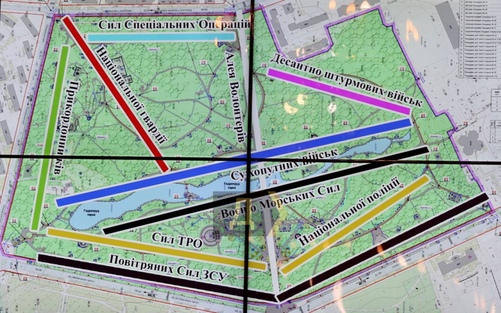Члени топонімічної комісії одноголосно проголосували за те, щоб у парку Перемоги з'явилися алеї Сил Спеціальних Операцій, Національної Гвардії, Десантно-Штурмових Військ, Волонтерів, Сухопутних військ, Військово-Морських Сил, Національної Поліції, Сил ТрО, Повітряних Сил, Прикордонників.
