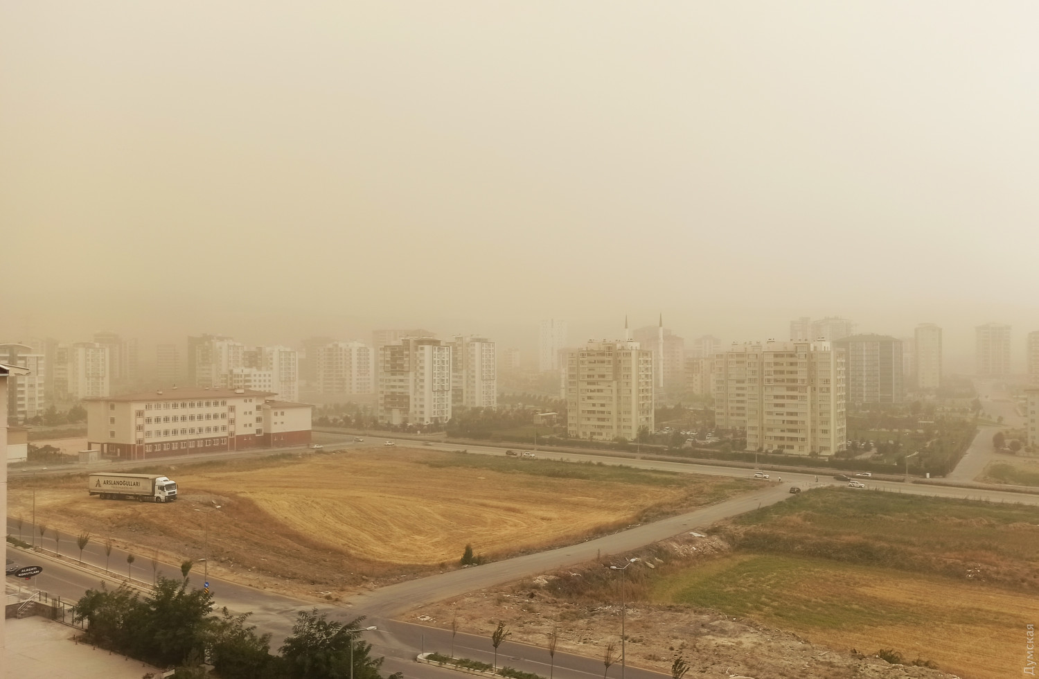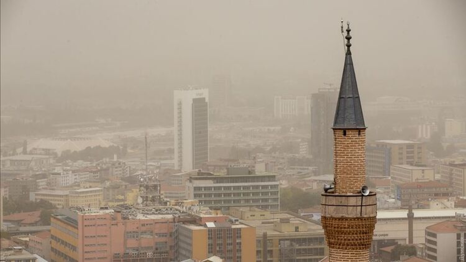 У Анкары прошла песчаная буря (фото) 12 сентября на столицу Турции Анкару обрушился сильный ураган, а в пригородах прошла песчаная буря. Турецкие СМИ публикую фото и видео инцидента. Отмечается, что огромное облако пыли и песка прошло на расстоянии 80 км от города и задело несколько поселков. Во время природного феномена на улицах потемнело. По прогнозам синоптиков ураган может затопить западную и северную часть провинции Анкара в районе городов Полатлы, Айас, Бейпазары, Гюдюль и Кызылджахамам.