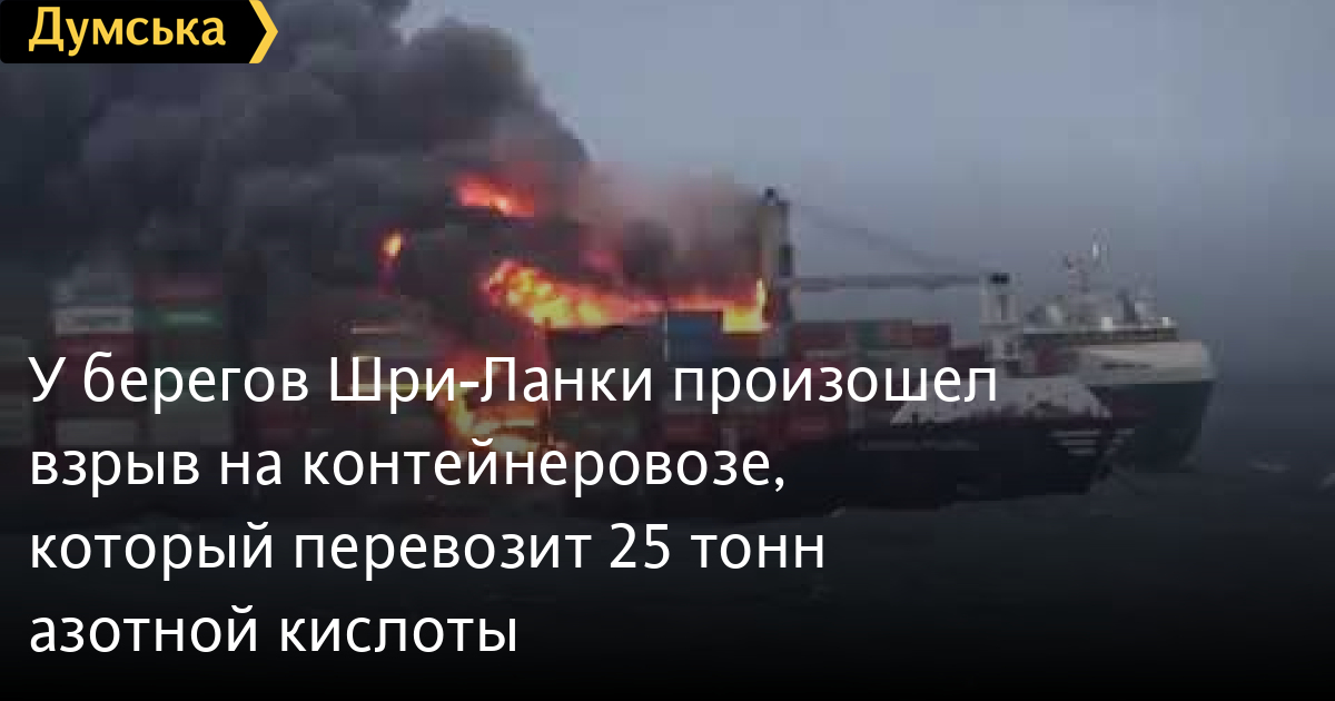 У берегов Шри-Ланки произошел взрыв на контейнеровозе, который перевозит 25 тонн азотной кислоты25 мая недалеко порта Коломбо (Шри-Ланка) на контейнеровозе X-Press Pearl прогремел мощный взрыв. Как сообщает Reuters, судно перевозит косметику и химикаты, в том числе 25 тонн азотной кислоты. Взрыв произошел после того, как военная авиация и моряки тушили возгорание, произошедшее еще 20 мая. Для ликвидации возгорания вертолет ВВС Шри-Ланки использовал сухой химический порошок. Спасатели эвакуировали весь экипаж. В результате инцидента пострадали как минимум два человека. Как сообщает издание Splash, по меньшей мере, восемь контейнеров упали в море – в них может быть азотная кислота. В настоящее время проводится операция по отводу горящего судна от береговой линии на 50 морских миль. «Ожидается прибытие в Шри-Ланку специального голландского рейса с жизненно важным оборудованием для локализации пожара», — прокомментировал изданию министр судоходства Шри-Ланки Рохита Абейгунавардена. СМЕРТЬ РОССИЙСКИМ ОККУПАНТАМ! Заметили ошибку? Выделяйте слова с ошибкой и нажимайте control-enter |