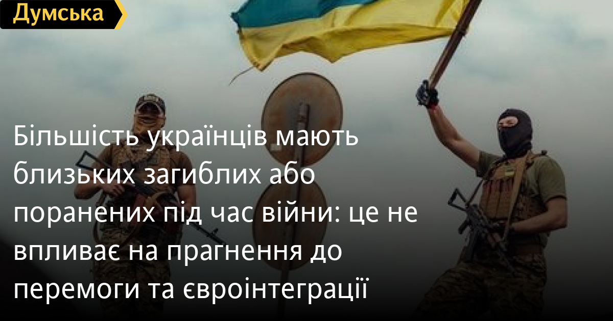 За даними соцопитування Київського міжнародного інституту соціології, 64% наших співгромадян мають бодай одного родича чи друга, які зазнали поранень під час війни, а у 63% загинула близька людина.