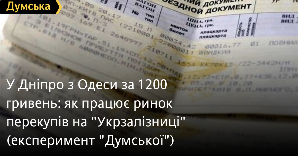 У Дніпро з Одеси за 1200 гривень: як працює ринок перекупів на «Укрзалізниці» (експеримент «Думської»)Експеримент з купівлею залізничних квитків провела кореспондентка «Думської» після того, як виявила в соцмережах сотні скарг від пасажирів «Укрзалізниці». Люди кажуть, що після відкриття продажу на популярні напрямки квитки зникають за лічені секунди. Місця скуповують через ботів перекупники, а потім перепродають у рази дорожче. Комунікацію з клієнтами вони ведуть переважно через Telegram або Viber. Так, наприклад, квиток з Одеси до Дніпра перекупники продають по 1200 грн. На сайті УЗ він коштує 543 грн. Ми спробували придбати квиток за напрямком Одеса — Ужгород, але вільних місць начебто немає. Перекупник запропонував квиток знову за ціною 1200 грн, тоді як на сайті «Укрзалізниці» він коштує 440 грн. «Свій перекупник є на кожен маршрут. Цей бізнес розділений і організований», — зазначає кореспондент. В «Укрзалізниці» придумали свій спосіб нібито боротьби з перекупниками — купівля квитків через Дія.Підпис. І запустили з 1 серпня тестовий режим на трьох популярних напрямках: №29/30 Київ — Ужгород, поїзд №12 Львів — Одеса, №27/28 Київ — Чоп. СМЕРТЬ РОСІЙСЬКИМ ОКУПАНТАМ! Помітили помилку? Виділяйте слова з помилкою та натискайте control-enter