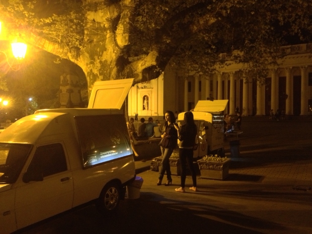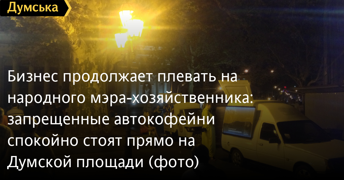 Исполкомовский запрет на размещение передвижных пунктов торговли в историческом центре города игнорируется почти всеми владельцами таких пунктов. Так, автокофейни продолжают работать у здания мэрии и на Приморском бульваре. Милиция их не замечает, народный мэр-хозяйственник, который и был инициатором запрета, — тоже.