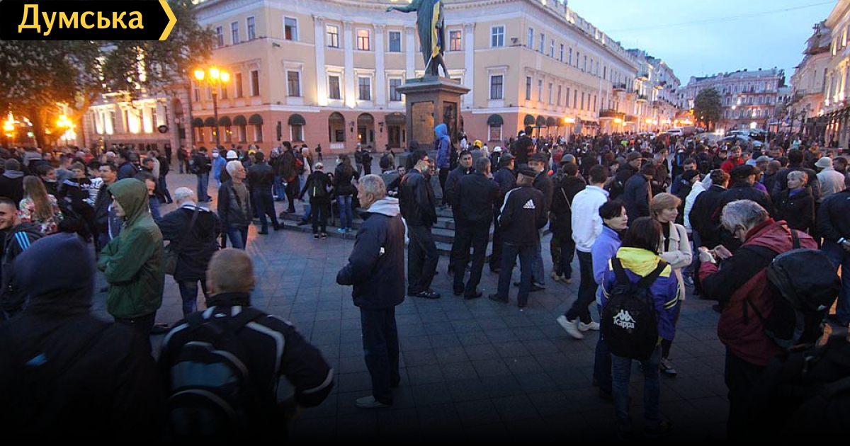 Лозунгов или каких-либо кричалок нет. Все обсуждают последние новости. Некоторые общаются с присутствующими на Приморском бульваре милиционерами – спрашивают, как милиция позволила стрелять из-за своих щитов 2 мая, те отвечают, что «это провокации» и обещают исполнять свой долг.
