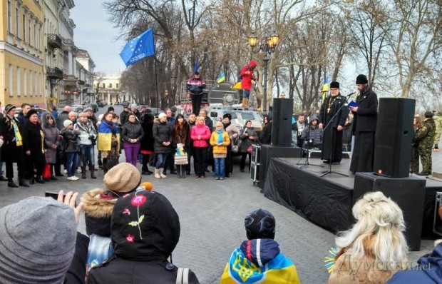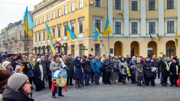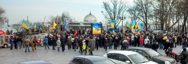 У Дюка проходит акция в честь годовщины одесского «Евромайдана» — ровно год назад там впервые собрались одесские сторонники евроинтеграции.