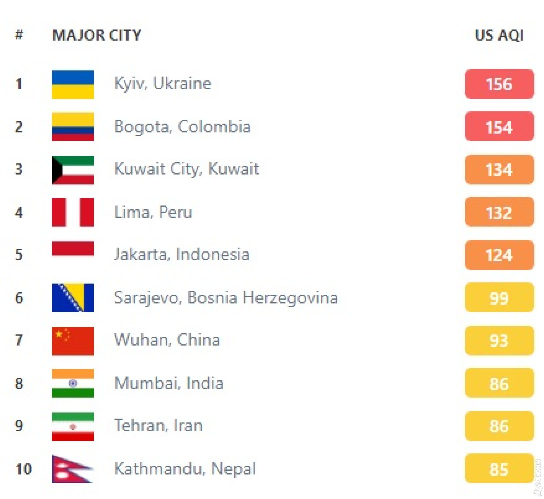 У понеділок, 5 вересня, показники забруднення повітря у Києві досягли найгірших показників у світі. Згідно із даними сервісу QiAir, рівень забруднення повітря у столиці України сьогодні сягає рекордних 156 балів. На другому місці розташувалася столиця Колумбії Богота (154), а на третьому – Кувейт (134). Відзначимо, що це сталось через пожежі на торф’яному родовищі поблизу села Соснівка Вишгородського району та поблизу села Перше Травня Броварського району Київської області, які почались 3 вересня. У ДСНС повідомили, що боротьба із займаннями триває. У Київській міській державній адміністрації зазначили, що забруднення повітря триватиме і завтра. У КМДА закликають мешканців столиці тримати вікна зачиненими та обмежити час знаходження на вулиці. Заметили ошибку? Выделяйте слова с ошибкой и нажимайте control-enter |