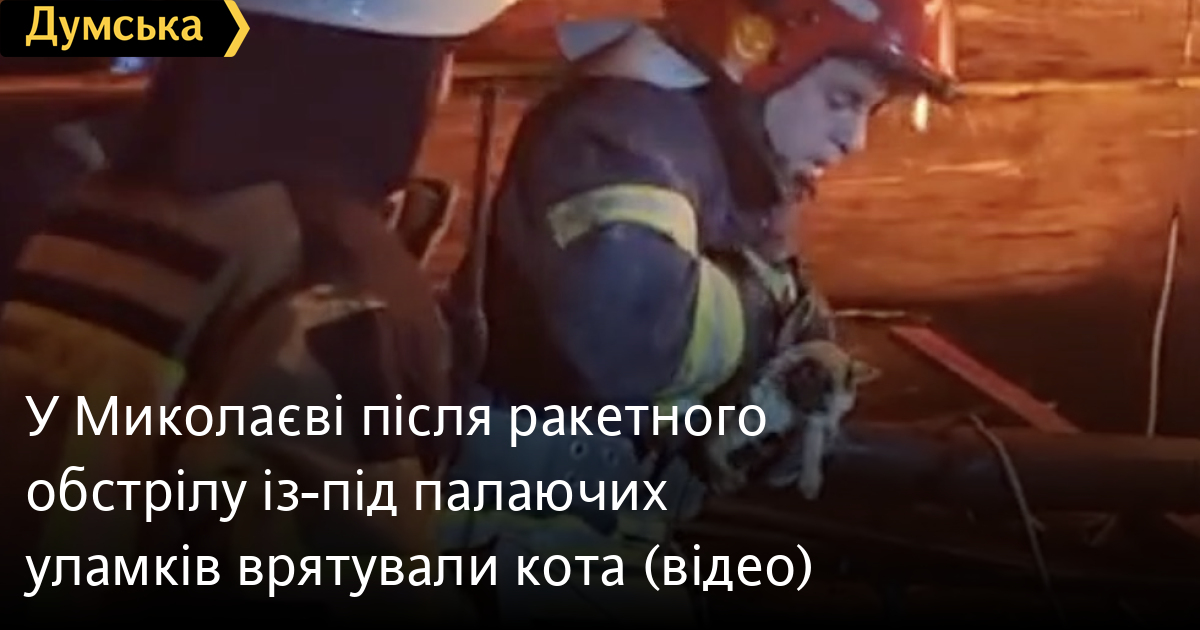 Рятувальники дістали кошеня із-під палаючих уламків будівлі ресторану, яка була зруйнована внаслідок обстрілу міста вночі 4 вересня.
