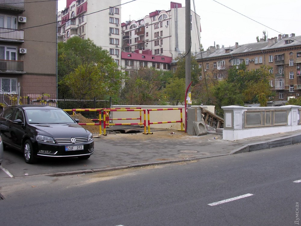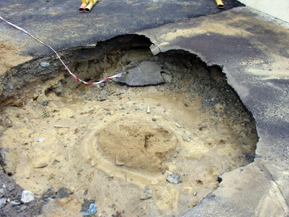 Очередной провал образовался возле моста Коцебу в центре Одессы.