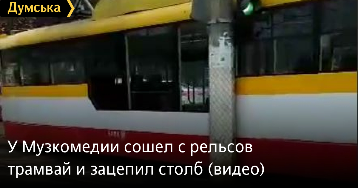 Утром трамвай №5 сошел с рельсов на Леонтовича, у входа в Музкомедию, и зацепил столб контактной линии.
