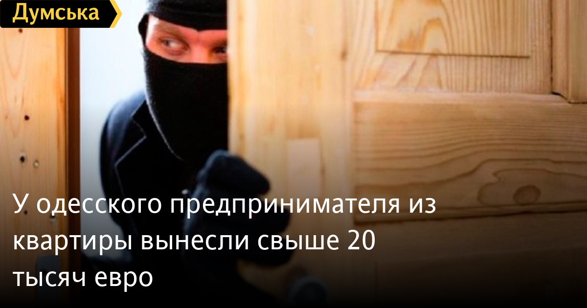 У одесского предпринимателя из квартиры вынесли свыше 20 тысяч евроБолее 20 тысяч евро украли из квартиры одесского предпринимателя в Пересыпском районе Одессы. Как сообщили «Думской» источники в правоохранительных органах, пострадавший рассказал, что кража произошла 14 марта во второй половине дня. Неизвестный подобрал ключ к входной двери, проник в жилье, расположенное на четвертом этаже, и вынес восемь тысяч евро, 13,5 тыс. долларов и 30 тыс. гривен. Сейчас решается вопрос о внесении сведений в ЕРДР по ч. 4 ст. 185 УК Украины. Заметили ошибку? Выделяйте слова с ошибкой и нажимайте control-enter |