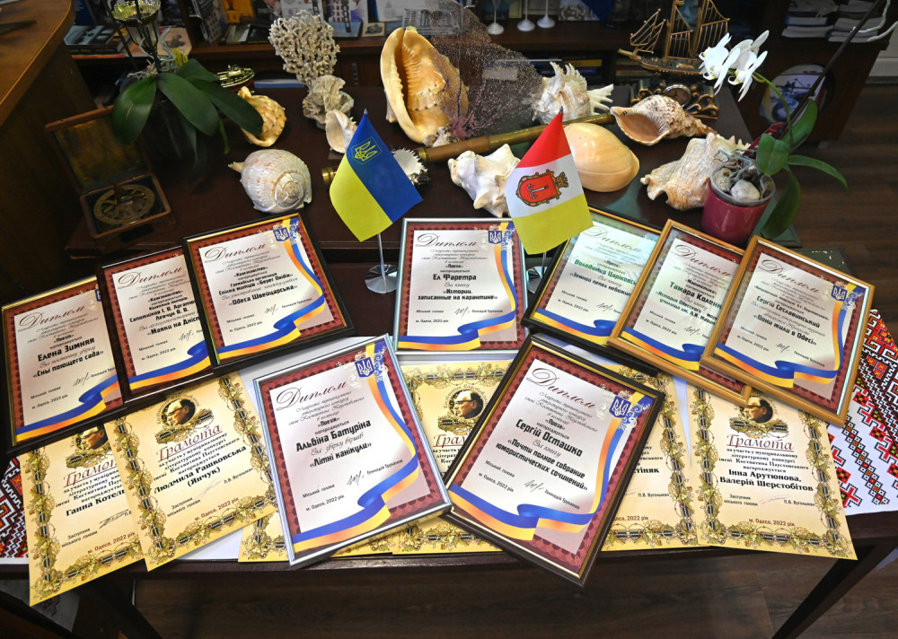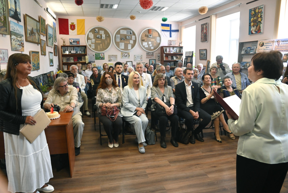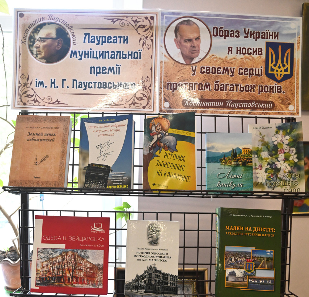Заведующая библиотекой Карина Апаринова рассказала об истории руководимого ею культурного учреждения и присвоении имени Паустовского. Председатель ВСПМ имени Я. П. Гайдаенко Александр Апаринов открыл выставку «Одесский Паустовский» и наградил художников грамотами.