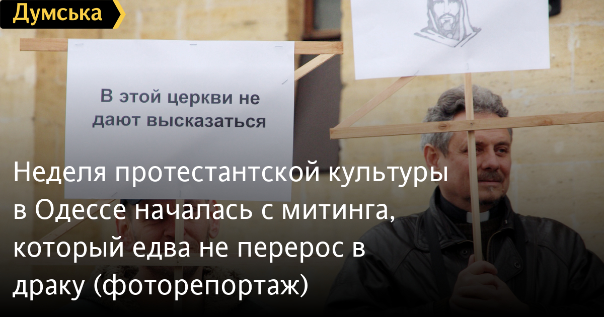 Неделя протестантской культуры в Одессе, посвященная 500-летию знаменитого демарша Мартина Лютера, началась с неприятных разборок. Сегодня представители нескольких приходов Немецкой евангелически-лютеранской церкви Украины провели митинг перед зданием кафедрального собора Святого Павла на Новосельского. Мирный пикет едва не перерос в драку.