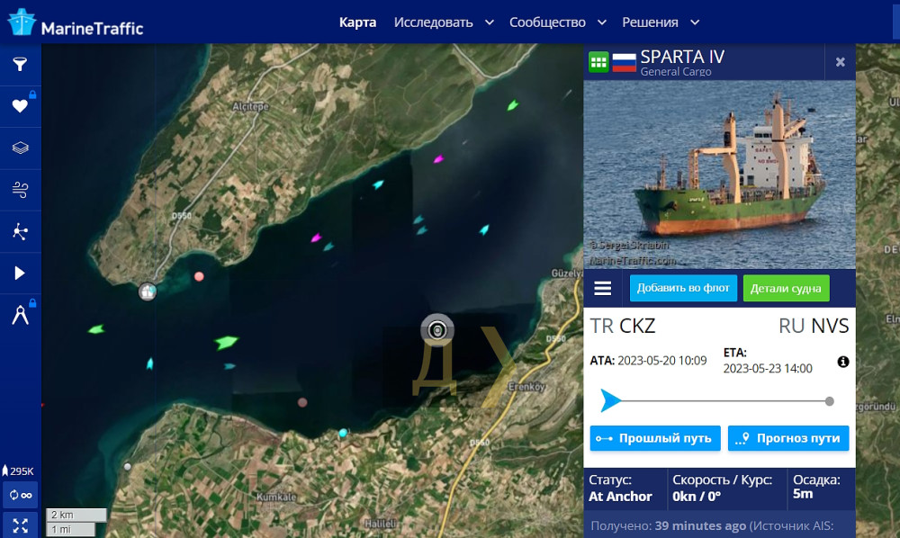 Російський контейнеровоз Sparta IV, неодноразово помічений у перевезеннях зброї, зазнав серйозної поломки і вже кілька днів стоїть у протоці Дарданелли.