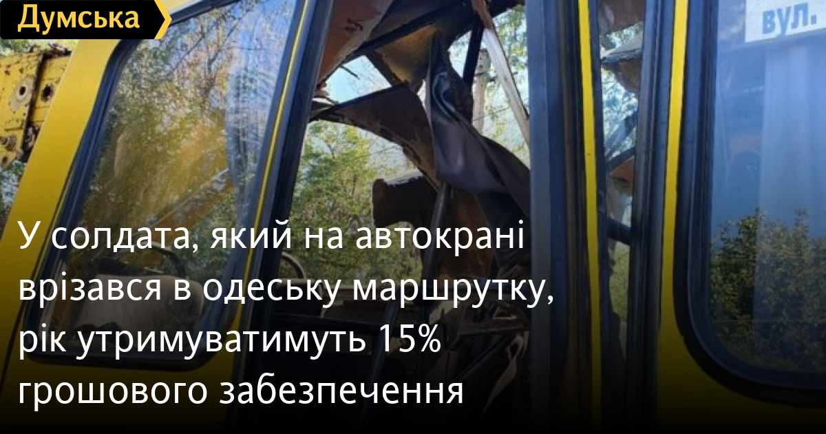 У солдата, який на автокрані врізався в одеську маршрутку, рік утримуватимуть 15% грошового забезпеченняВинним у порушенні правил безпеки дорожнього руху, вчиненому в стані алкогольного сп'яніння, визнав Суворовський районний суд Одеси мобілізованого жителя Подільського району, який восени минулого року, керуючи службовим автокраном на шасі МАЗа, зіткнувся на вулиці Добровольського з маршрутним таксі №146. Солдата засудили за ст. 286-1 КК України до року позбавлення волі, але замінили покарання службовим обмеженням на той самий строк — у нього утримуватимуть на користь держави 15% грошового забезпечення. Крім того, чоловікові заборонили на три роки керувати транспортними засобами. ДТП, про яку йдеться, сталася 19 вересня. Військовослужбовець був нетверезий. Унаслідок аварії постраждали дві пасажирки автобуса. СМЕРТЬ РОСІЙСЬКИМ ОКУПАНТАМ! Помітили помилку? Виділяйте слова з помилкою та натискайте control-enter Новини по цій темі: 30 серпня 2025: Машина вилетіла в кювет: мер Рені потрапив в аварію, його мати загинула, а маленький син у лікарні (фото) 18 серпня 2025: Троє загинули, один у лікарні: на трасі Одеса-Рені водій Mercedes не пропустив фуру (фото) 28 липня 2025: П'яний на "Ягуарі" або гіпертонік? Звільнений топ-посадовець одеської поліції хоче повернутися на службу 2 квітня 2025: В Одесі водій BMW спровокував аварію, в якій постраждали п`ятеро людей, і втік (фото, відео) |