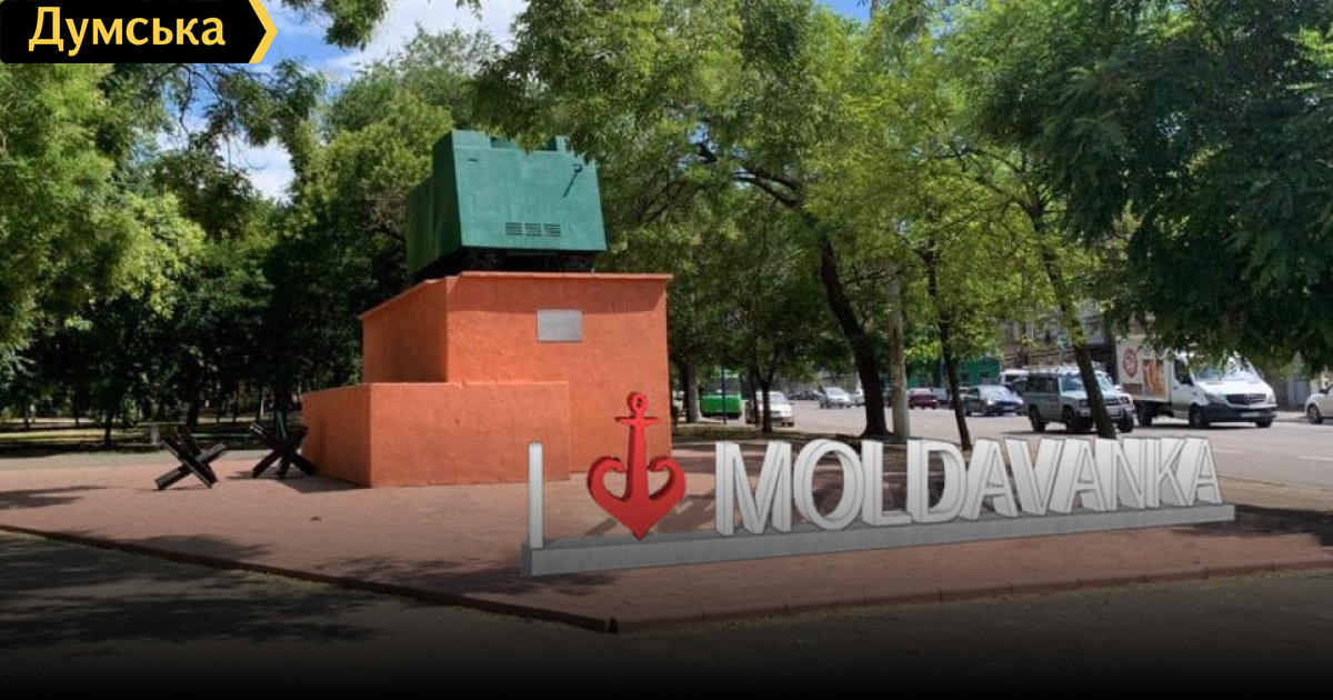 Большую надпись I love Moldavanka, где вместо слова love будет якорь-сердце (туристический логотип Одессы), установят возле памятника танку НИ-1 («На испуг») в Серединском сквере. С такой инициативой выступила общественная организация «На благо Одессы», которая согласовала установку с мэрией.