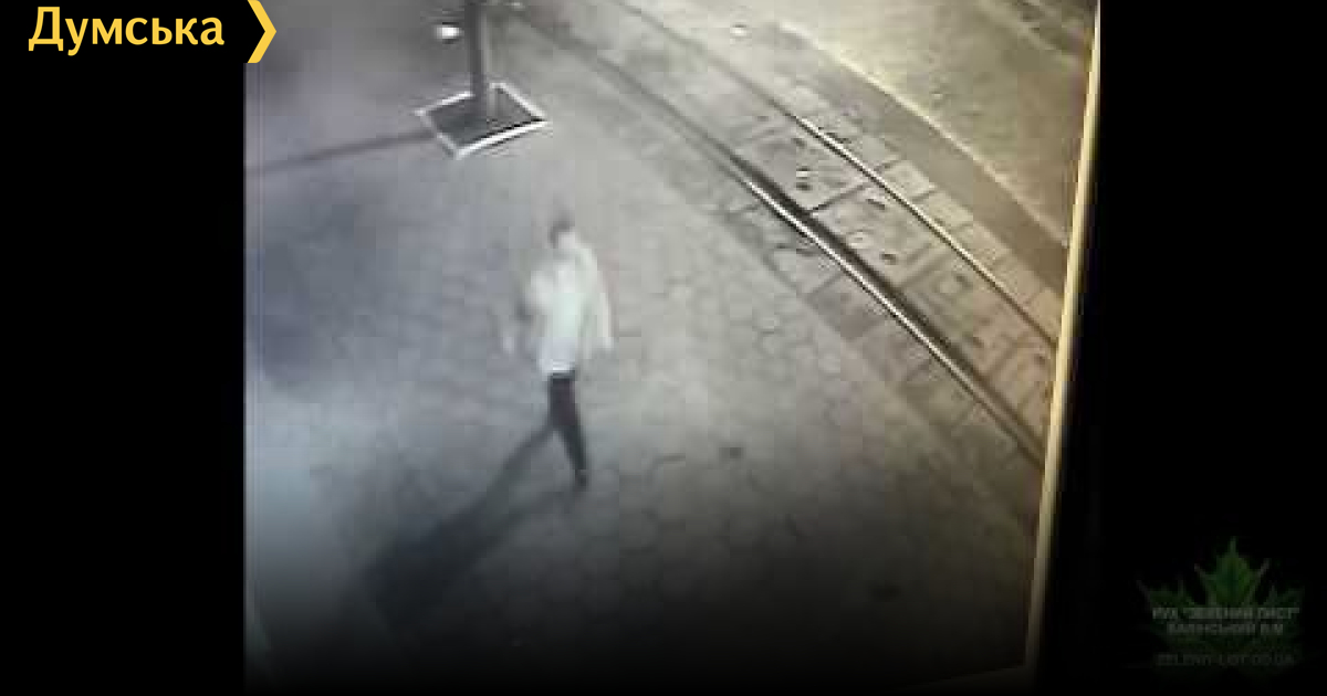 «Существо, которое вы видите на экране, повадилось ломать молодые деревья из года в год, — говорит представитель «Зеленого листа» Владислав Балинский. — Деревья ломает явно со злым умыслом, отдавая предпочтение тем, что высажены в первом от дороги ряду. К сожалению, качество записи не позволяет рассмотреть его лица, однако характерная осанка, походка и залысины на голове, одежда и то, как он действует левой рукой, а также некоторые другие признаки могут помочь одесситам узнать в этом человеке своего пропащего соседа-алкоголика, например, или забулдыгу, ошивающегося у соседнего магазина. Если это произойдет, пожалуйста, сразу же звоните мне по номеру 0984449449 или 7430082».