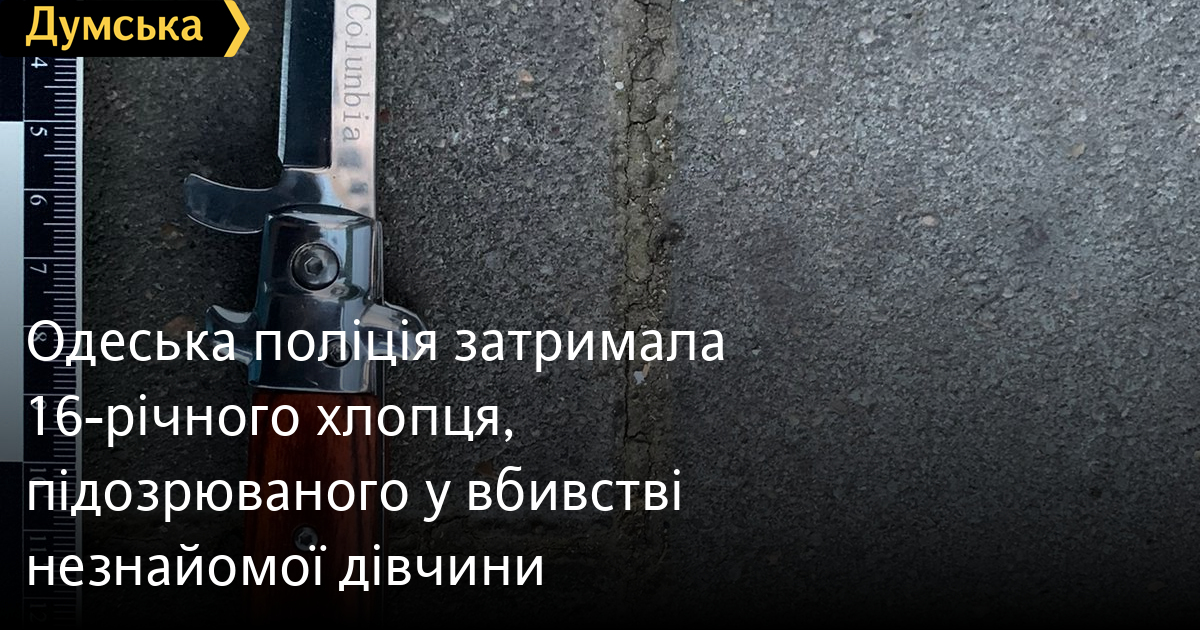 Одеська поліція затримала 16-річного хлопця, підозрюваного у вбивстві незнайомої дівчини16-річного хлопця, якого підозрюють в умисному вбивстві дівчини, затримали в Одесі. Як повідомили в обласній поліції, трагедія сталася минулого тижня в центрі Одеси. На вулиці Катерининській між неповнолітнім хлопцем і незнайомою йому 20-річною дівчиною та її співмешканцем сталася перепалка. У розпал конфлікту підозрюваний витягнув ніж і вдарив дівчину в груди. Поліцію та швидку викликали очевидці. Постраждалу госпіталізували з проникаючим ножовим пораненням серця. Через деякий час вона померла. Підозрюваного поліцейські затримали на місці злочину, там же виявили й ніж, яким було завдано смертельного удару. Фігурантові оголосили про підозру в умисному вбивстві за частиною першою статті 115 КК України. Йому обрали запобіжний захід у вигляді тримання під вартою. Слідство триває. Помітили помилку? Виділяйте слова з помилкою та натискайте control-enter Новини по цій темі: 29 липня 2025: В Усатово Одеської області сталася перестрілка: поліція працює на місці (відео, оновлено) 28 липня 2025: П'яний на "Ягуарі" або гіпертонік? Звільнений топ-посадовець одеської поліції хоче повернутися на службу 19 червня 2025: Дівчинку, яку шукали сотні одеситів, знайшли вбитою: поліція працює з чоловіком, ймовірно причетним до загибелі 27 травня 2025: Увели гектар в університету: на Одещині засудили земельних аферистів, але без посадки і Хвоста |
