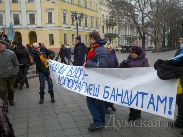 Ничего удивительного нет в том, что у нас разные взгляды на происходящее. Студенты на майдане не только из Галычыны, но и со всей Украины : с Севастополя, с Симферополя, с Одессы, с Донецка, с Днепра, с Киева, с запада само-собой. Пора нам с вами не просто смотреть телек и вторить за квазиведущим «хоxлы, майдан, разруха! хоxлы, майдан, разруха», а для начала просто принимать то, что у других людей может быть иное мнение на происходящее. Это первый шаг, и без него никуда. Даже если вы сделаете третий, четвертый, двадцатый, но не сделаете этого простейшего первого шага — то весь этот путь пройден зазря. Все кричат о европейских ценностях: одни к ним стремятся, другие противятся, но абсолютное большинство не понимает в чем цимес этих ценностей. Нет, это не гoмосятина. Гoмосятина — это всего лишь следствие того, что люди там могут жить без вражды друг к другу, что в европе люди допускают наличие иного мнения у окружающих. Одним из следствий этого принципа и является гoмосятина, которая, кстати, на мой взгляд, куда более безопасна, нежели культ гопничества, который у нас культивируется лучшими селекционерами страны в тепличных условиях. По поводу хорошего для города — так я вам отвечу тоже. Мы все с вами платим налоги, и при чем только малая часть из нас знает сколько именно платим мы налогов. Налогов мы платим немало, мягко говоря. Так вот на эти налоги и должно содержаться государство, в том числе красить мосты, убирать мусор. Проще говоря: люди готовы платить налоги для того, чтобы нанять работников(власть) которая будет защищать (армия, мвд, сбу), лечить, помогать (мчс), обучать, и вообще всячески обслуживать людей, которые наняли эту власть, платят ей зарплату, и дают денег на содержание страны. Еще более просто говоря: кто девушку ужинает, тот ее и танцует. Изначально в роли кормящего — народ, в роли девушки — власть. У нас с вами все наоборот. Девушка оxренела настолько, что забирает почти все наши деньги, жрет от живота, раз в четыре года танцует с народом, но после танца не кормящий траxает девушку, а девушка траxает кормящего, при чем в извращенной форме. Итак, вернемся к главному: первый шаг к выздоровлению общества — допускать и принимать то, что у окружающих людей может быть иное мнение.
