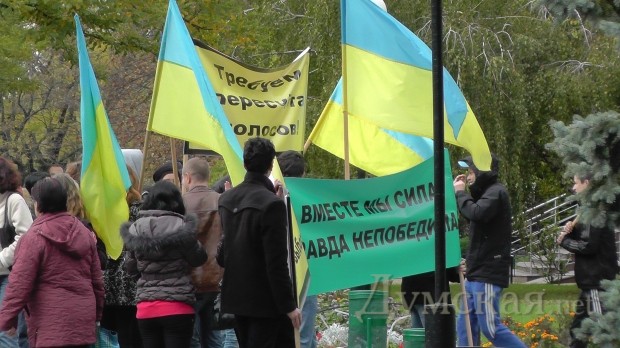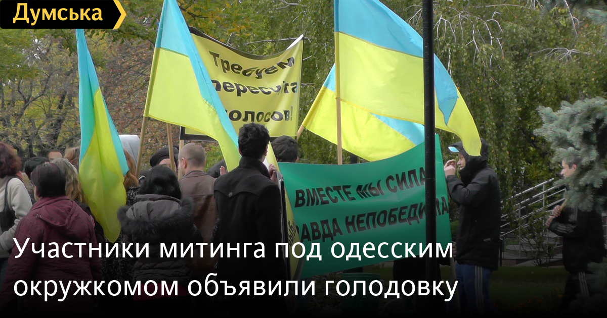 Около двухсот человек, собравшихся у стен Малиновской райадминистрации, где располагается 134-й окружком, объявили голодовку в знак протеста против фальсификации результатов голосования.