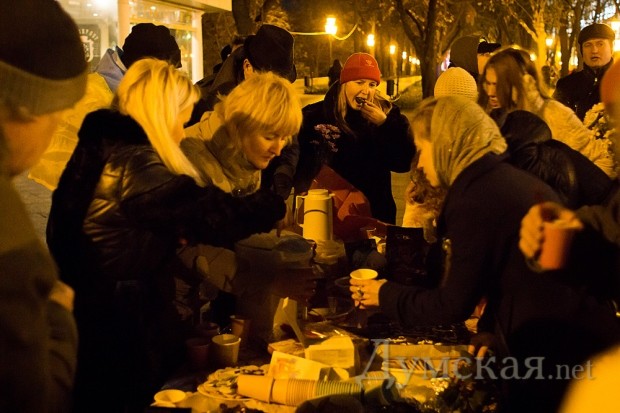 Под занавес акции людей угостили горячим чаем и сладостями.