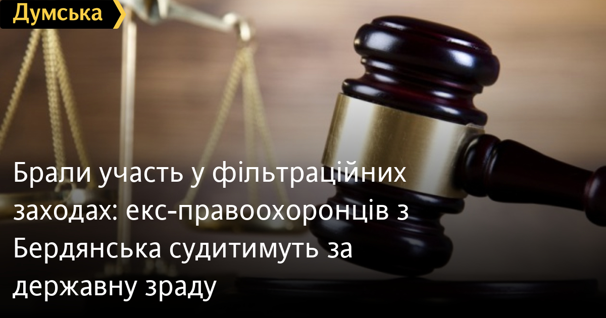 Двох колишніх правоохоронців з Бердянська, які з перших днів тимчасової окупації добровільно перейшли на бік ворога, судитимуть за державну зраду.