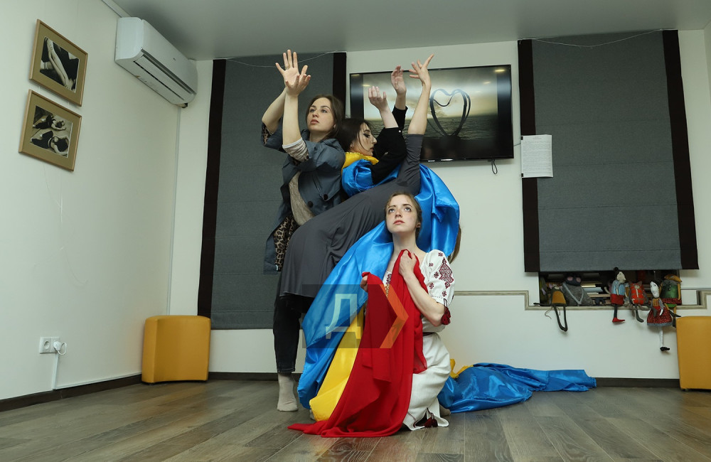 Лена с детства увлекалась фотографией, первый снимок был сделан на пленочную камеру трясущимися руками, ведь оставалось четыре кадра в пленке, испортить их было нельзя. Изучая труд классика психоанализа Зигмунда Фрейда о сознательном и бессознательном, этим двум сторонам единой совокупности человеческой психики, девушка выработала определенную концепцию своего проекта. Фотографировала танцовщиц, чьи позы, свободные от вербальной осознанности, были запечатлены в обыденной жизни. Но грянула война, и на первый план вышел бессознательный страх будущего (да и настоящего). Появилось ощущение, что спокойные фотографии, снятые в сепии, нужно дополнить ярким танцевальным перформансом, и одним из цветовых пятен окажется национальный флаг, в который, словно ища защиты, будут укутываться хрупкие танцовщицы.