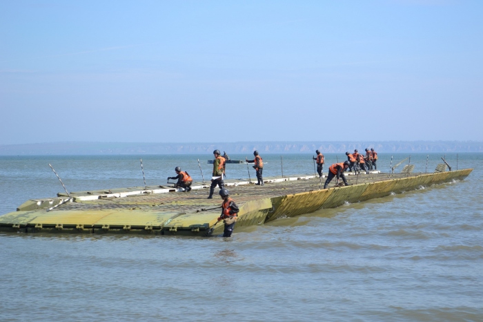 «В ходе учений военные инженеры под руководством заместителя командира полка, подполковника Александра Реки отработали комплекс специальных задач — совершили марш в определенный район, провели инженерную разведку и инженерное оборудование участка, разгрузили на воду части паромно-мостового парка, отработали вопросы маскировки, охраны и обороны переправы, а также действия в условиях применения противником оружия массового поражения», — говорится в сообщении.