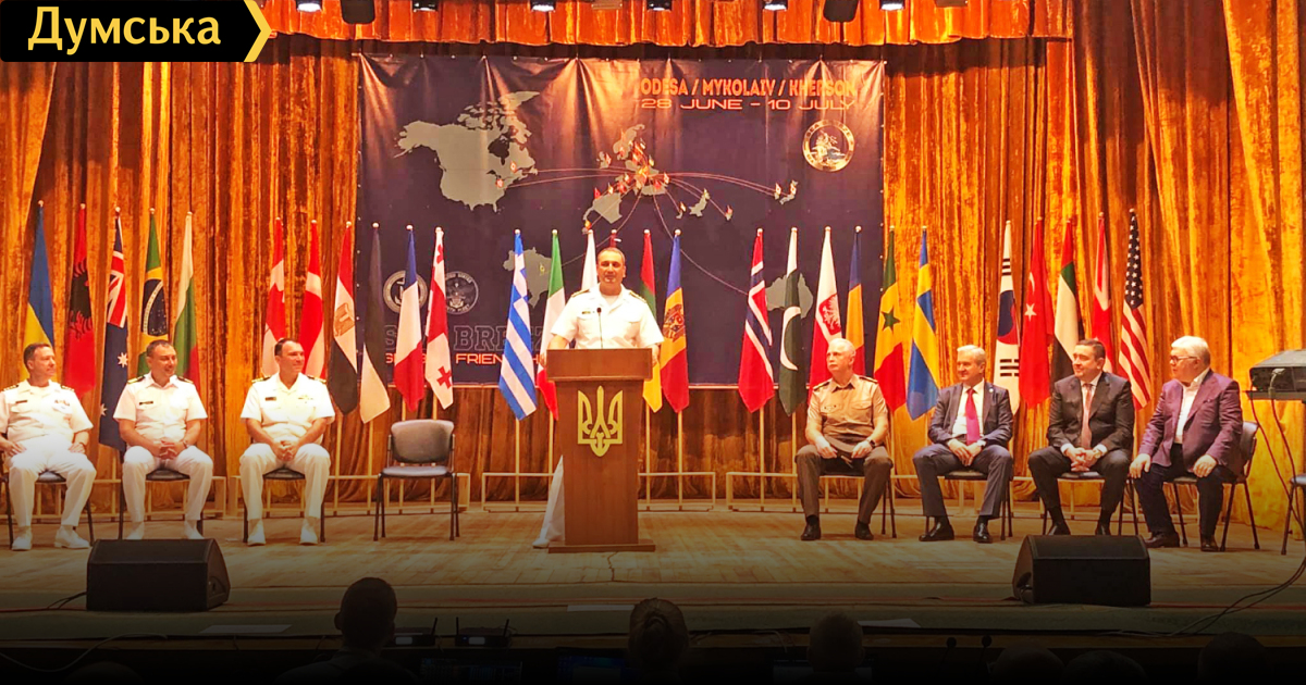Учения «Си Бриз — 2021» завершены: в Доме офицеров состоялось торжественное закрытиеУтром 10 июля в одесском Доме офицеров, что на Пироговской, состоялось торжественное закрытие ежегодных международных учений «Си Бриз-2021». На церемонии выступил командующий ВМСУ контр-адмирал Алексей Неижпапа. Командующий подвел итоги, а также наградил командира британского эсминца «Дефендер» Виндса Оуэна нагрудным знаком «Защитник Украины», а также начальника регионального управления Морской охраны контр-адмирала Олега Костура. СМЕРТЬ РОСІЙСЬКИМ ОКУПАНТАМ! Помітили помилку? Виділяйте слова з помилкою та натискайте control-enter