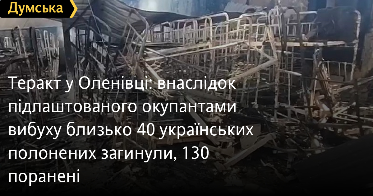 Теракт у Оленівці: внаслідок підлаштованого окупантами вибуху близько 40 українських полонених загинули, 130 пораненіОфіс генпрокурора та Головне управління розвідки Міноборони оприлюднили інформацію про вибух у виправній колонії №120 в окупованому селі Оленівка на території Донецької області. За даними прокуратури, внаслідок вибуху загинуло 40 осіб, 130 отримали поранення. Відкрито досудове розслідування за фактом порушення законів та звичаїв війни. Встановлено, що в Оленівській колонії, порушуючи Віденську конвенцію, окупанти утримують мирних жителів та українських військовополонених. За даними ГУР МО України, вибухи сталися у новому приміщенні, яке мали переобладнати для утримання полонених, вивезених із «Азовсталі». Роботи в приміщенні закінчилися два дні тому, потім до нього перевели частину утримуваних захисників «Азовсталі». У Головному управлінні розвідки з'ясували, що 1 серпня на «об'єкт» мала прибути комісія для перевірки витрачання коштів та умов утримання полонених. Вибухи сталися у ніч проти 29 липня. Аудіоперехоплення, які є у розпорядженні СБУ, також підтверджують, що в Оленівці сталося навмисне вбивство українських полонених російськими окупантами. За наявною інформацією, внаслідок теракту ніхто з російських військових не постраждав. Розвідники переконані, що головною метою цього теракту є приховання тотального розкрадання грошей, виділених на утримання українських військовополонених. Також, за розрахунками організаторів теракту, смерть захисників «Азовсталі» має призвести до зростання соціальної напруги в Україні. За даними розвідки, теракт було здійснено руками найманців зі складу ПВК «Вагнера» («Ліга») з особистої ініціативи її господаря Євгена Пригожина. «Закликаю всі міжнародні інститути висловити жорстку позицію щодо подій у Оленівці», — заявив начальник ГУР Кирило Буданов. Він закликав Міжнародний Червоний Хрест, який є одним із гарантів безпеки та належного утримання українських військовополонених, дати належну оцінку подіям та докласти зусиль щодо з'ясування реальних обставин та причин вбивства українських захисників. Також він вимагає негайного допуску представників України на місце події для вивчення ситуації та контролю умов утримання полонених. СМЕРТЬ РОСІЙСЬКИМ ОКУПАНТАМ! Помітили помилку? Виділяйте слова з помилкою та натискайте control-enter |