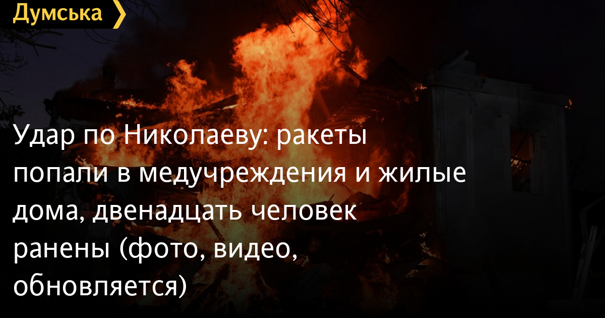 Николаевская область подверглась массированному ракетному обстрелу, двенадцать человек ранены, предварительно без жертв.