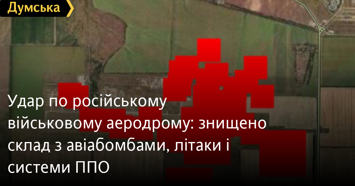 Крім складу з керованими авіабомбами, які залишаються одним із головних засобів впливу окупаційних військ на українських захисників, постраждала авіаційна техніка, сховище паливно-мастильних матеріалів і системи ППО, що прикривали авіабазу.