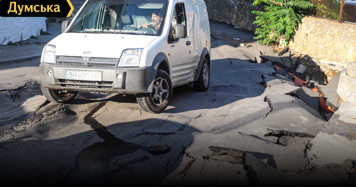 Как передает корреспондент «Думской», не справился с объемами воды ливневой коллектор на 10-й станции Фонтана. Поворот вниз к «замку Гарри Поттера» стал практически непроездным. Асфальтное покрытие пошло буграми и огромными трещинами, а вода из ливневого коллектора, смешиваясь с водой, которую выкачивают из паркинга высоток, стекает на пляж прямо по крышам торговых объектов, пристроенных к подпорной стене.