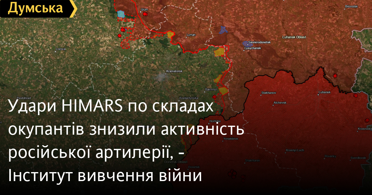 Українські удари HIMARS по російських складах боєприпасів, тилових підрозділах і пунктах управління, ймовірно, погіршують позиції російської артилерії. Зокрема, такі атаки погіршили здатність російських військ витримувати великі обсяги артилерійського вогню вздовж лінії фронту.