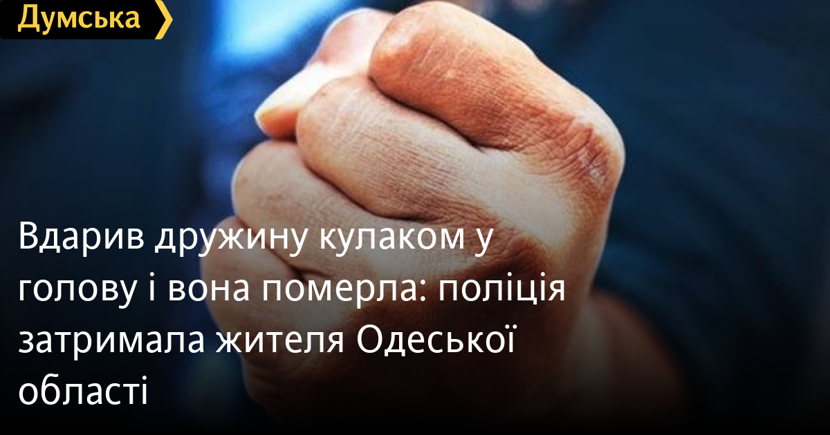 Вдарив дружину кулаком у голову і вона померла: поліція затримала жителя Одеської областіЖителя Болградського району, який вдарив свою дружину кулаком у голову, після чого вона померла, затримали правоохоронці. Як повідомили у пресслужбі поліції Одеської області, між подружжям стався конфлікт під час розпивання спиртного в орендованій квартирі в Арцизі. Під час сварки 41-річний чоловік вдарив жінку кулаком по обличчю, від чого вона впала і вдарилася головою. Кривдник пішов, не надавши постраждалій допомоги. 34-річна потерпіла попросила знайомого відвезти її до сестри, а вранці їй стало гірше. Родичка викликала швидку, але до приїзду лікарів жінка померла. За попередніми даними, смерть настала від травми голови. Точна причина смерті буде встановлена за результатами судово-медичної експертизи. Зловмисника затримали за місцем проживання. Йому повідомили про підозру за ч. 2 ст. 121 КК України. Фігуранту загрожує від семи до десяти років позбавлення волі. Суд обрав підозрюваному запобіжний захід у вигляді домашнього арешту. Помітили помилку? Виділяйте слова з помилкою та натискайте control-enter Новини по цій темі: 29 липня 2025: В Усатово Одеської області сталася перестрілка: поліція працює на місці (відео, оновлено) 28 липня 2025: П'яний на "Ягуарі" або гіпертонік? Звільнений топ-посадовець одеської поліції хоче повернутися на службу 19 червня 2025: Дівчинку, яку шукали сотні одеситів, знайшли вбитою: поліція працює з чоловіком, ймовірно причетним до загибелі 27 травня 2025: Увели гектар в університету: на Одещині засудили земельних аферистів, але без посадки і Хвоста |