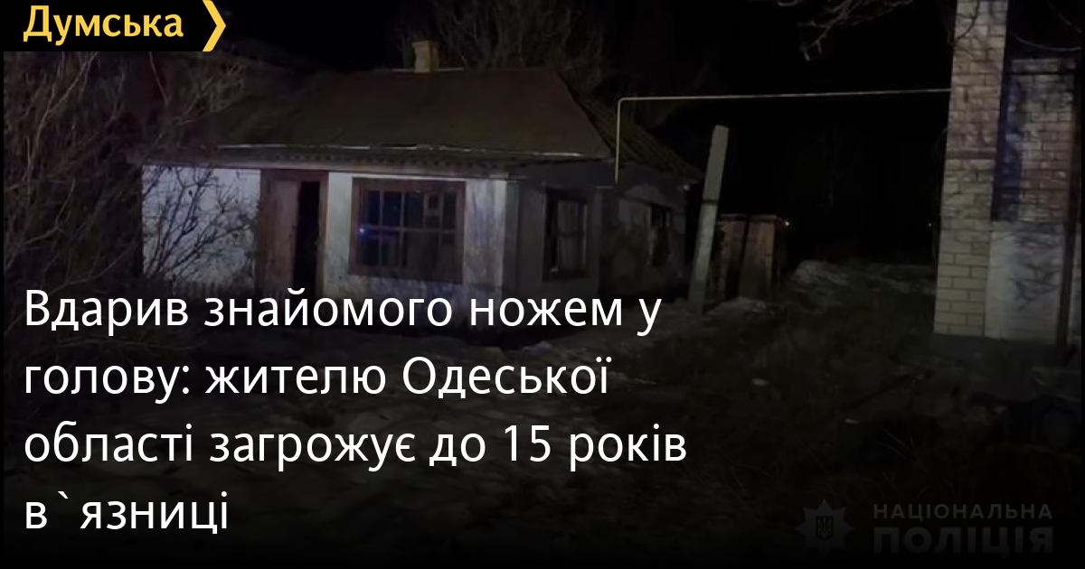 Вдарив знайомого ножем у голову: жителю Одеської області загрожує до 15 років в`язниціПро підозру у скоєнні умисного вбивства повідомили жителю Подільського району, який завдав односельцю удар ножем у голову. Як розповіли у пресслужбі поліції Одеської області, до правоохоронців звернувся мешканець Любашівки, який сказав, що знайомий зізнався йому у вбивстві. Під час перевірки ця інформація підтвердилася. Виявилося, що двоє чоловіків разом розпивали алкоголь, коли між ними спалахнула сварка. Господар будинку схопив ніж і кілька разів ударив гостя в голову. Коли він побачив, що той не подає ознак життя, розповів про те, що трапилося, знайомому. Поліцейські вилучили з місця події знаряддя злочину та повідомили фігуранту про підозру за ч. 1 ст. 115 Кримінального кодексу України. Санкція статті передбачає від семи до п'ятнадцяти років позбавлення волі. Наразі вирішується питання про обрання затриманому запобіжного заходу. Помітили помилку? Виділяйте слова з помилкою та натискайте control-enter Новини по цій темі: 29 липня 2025: В Усатово Одеської області сталася перестрілка: поліція працює на місці (відео, оновлено) 28 липня 2025: П'яний на "Ягуарі" або гіпертонік? Звільнений топ-посадовець одеської поліції хоче повернутися на службу 19 червня 2025: Дівчинку, яку шукали сотні одеситів, знайшли вбитою: поліція працює з чоловіком, ймовірно причетним до загибелі 27 травня 2025: Увели гектар в університету: на Одещині засудили земельних аферистів, але без посадки і Хвоста |