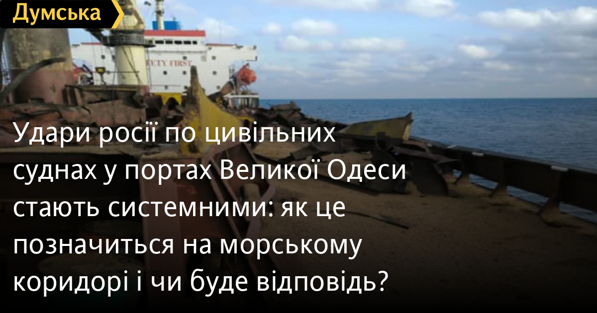 Атаки росії по цивільному судноплавству на Чорному морі набули системного характеру, причому, зазначає військовий оглядач «Думської» Віктор Босняк, ворог свідомо підловлює балкери (та контейнеровози, як було нещодавно в Чорноморську) в гаванях.