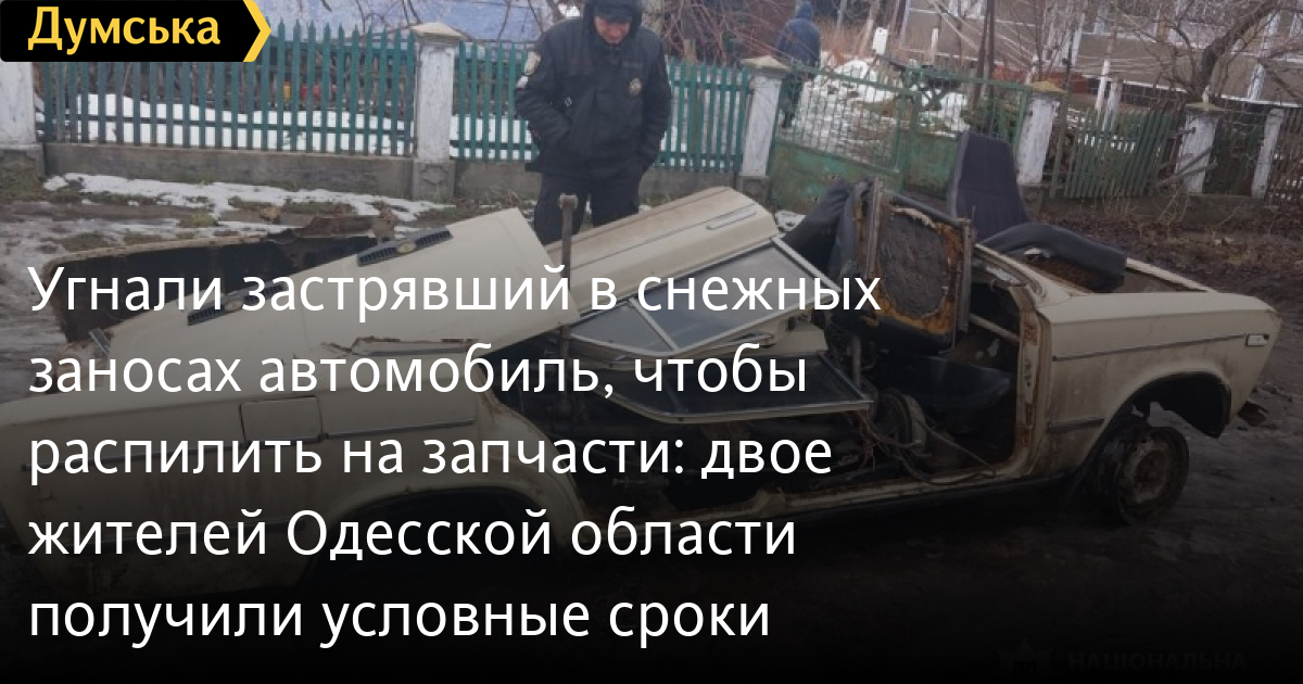 Викрали застряглий у снігових заметах автомобіль, щоб розпиляти на запчастини: двоє жителів Одеської області отримали умовні терміниПо п'ять років в'язниці з випробувальними термінами на рік і чотири місяці отримали двоє жителів Подільського району за викрадення «Жигулів», скоєне в січні цього року. У поліції повідомили, що місцеві автомайстри потягли застряглий у снігових заметах легковик, який залишила на узбіччі біля села Новосамарка його 25-річна господиня. Коли жінка повернулася за автомобілем, його на колишньому місці вже не виявилося. Поліція з'ясувала, що машину викрали місцеві жителі 38 і 27 років. Незабаром уже частково розпиляні «Жигулі» виявили на території домогосподарства одного з фігурантів. Те, що залишилося від машини, повернули господині. Чоловіки також компенсували їй завдані збитки. Суд розглядав справу за 289-ю статтею Кримінального кодексу України (незаконне заволодіння транспортним засобом). Помітили помилку? Виділяйте слова з помилкою та натискайте control-enter |