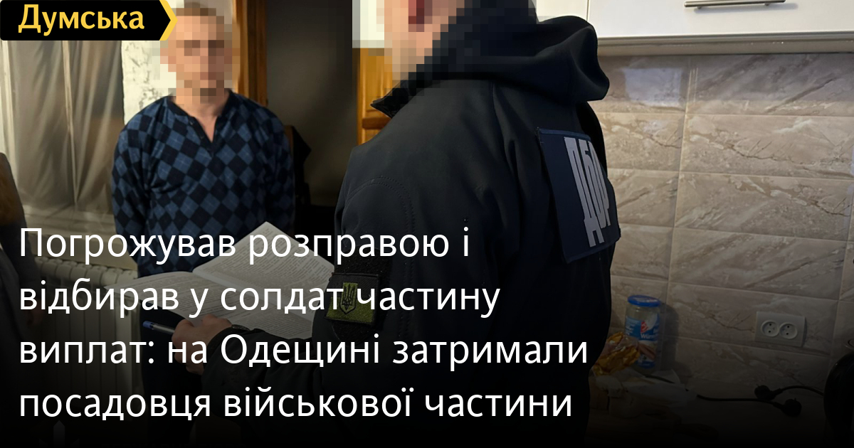 Погрожував розправою і відбирав у солдат частину виплат: на Одещині затримали посадовця військової частини