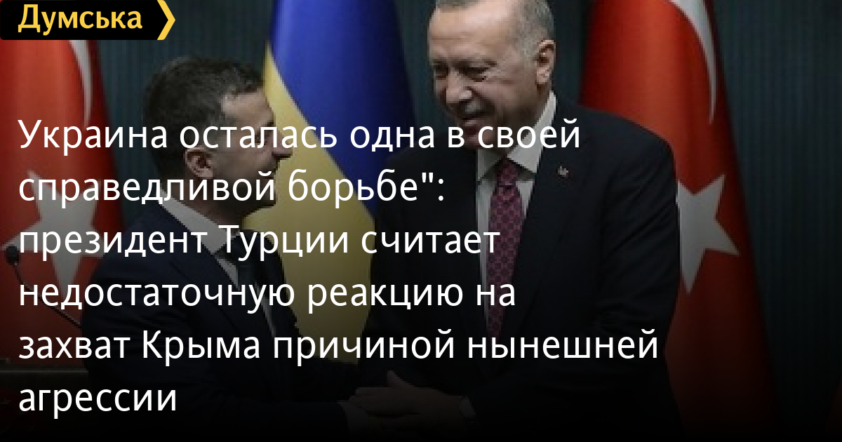 «Если бы весь Запад и весь мир подняли свой голос против вторжения в Крым в 2014 году, столкнулись ли мы с сегодняшней картиной? [ ] К сожалению, международное сообщество не выявило необходимой чувствительности и не предоставило необходимой поддержки для устранения этой несправедливости», — сказал Эрдоган.