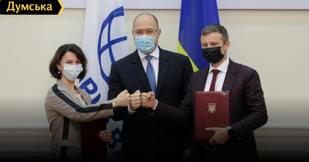 Правительство Украины и Всемирный банк заключили соглашение на сумму 350 млн долларов. Об этом сообщил в Telegram премьер-министр Денис Шмыгаль. Он отметил, что средства будут направлены на развитие экономики в период пандемии, социальную поддержку уязвимых слоев населения и на усиление государственных институтов. По словам Шмыгаля, благодаря этой сделке правительство сможет реализовать системные проекты для развития рынка земли, продолжить реформу газового сектора, а также укрепить кредитный рынок. СМЕРТЬ РОСІЙСЬКИМ ОКУПАНТАМ! Помітили помилку? Виділяйте слова з помилкою та натискайте control-enter