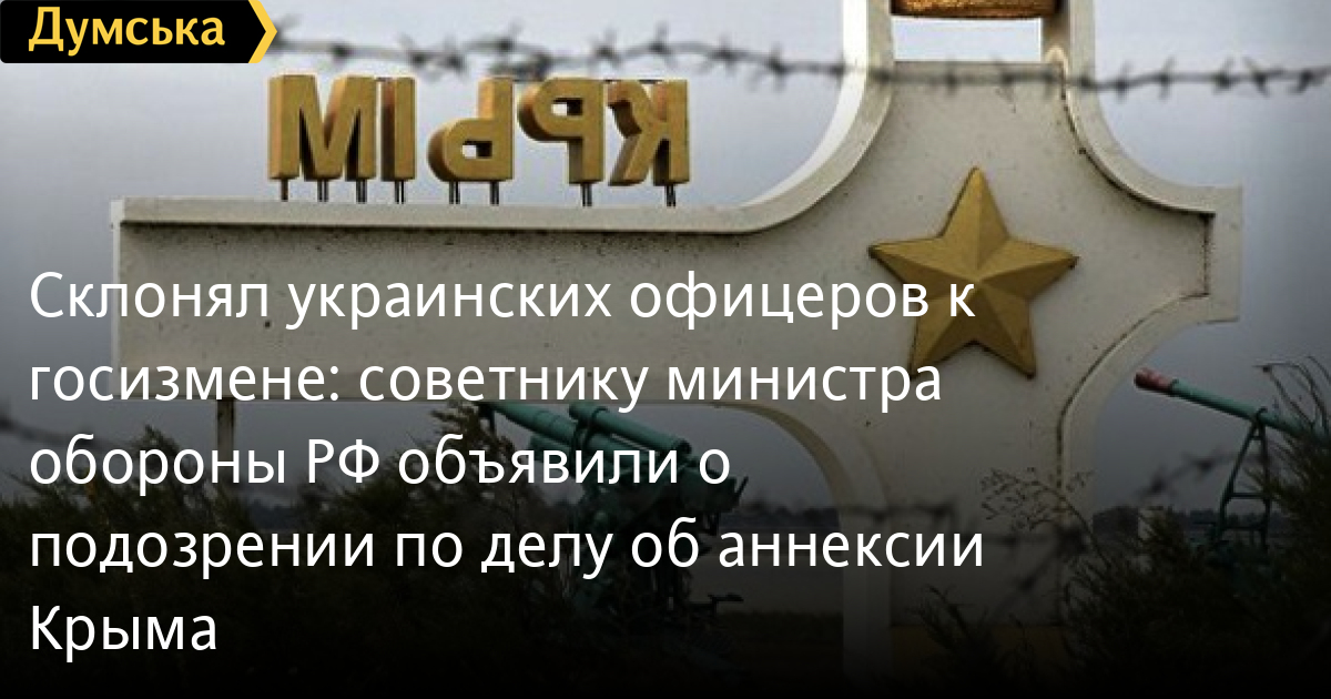 Повідомили про підозру раднику міністра оборони РФ щодо подій у Криму в 14 році. Він командував південним військовим округом ЗС РФ та блокував підрозділ морської піхоти ВМС України. Документи щодо підозри та виклик на допит вже готові відправити до РФ. https://t.co/2OMSr4Bxnf pic.twitter.com/RN0fMUbxod