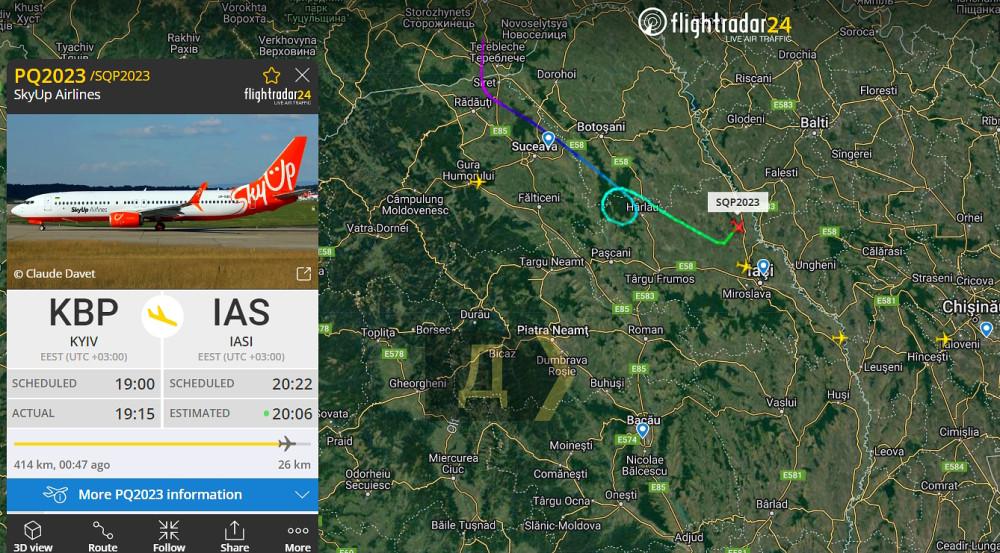 Увечері 4 квітня Boeing 737-800 з реєстраційним номером UR-SQP піднявся зі злітно-посадкової смуги аеропорту «Бориспіль», приземлившись о 20:06 в аеропорту румунського міста Ясси.
