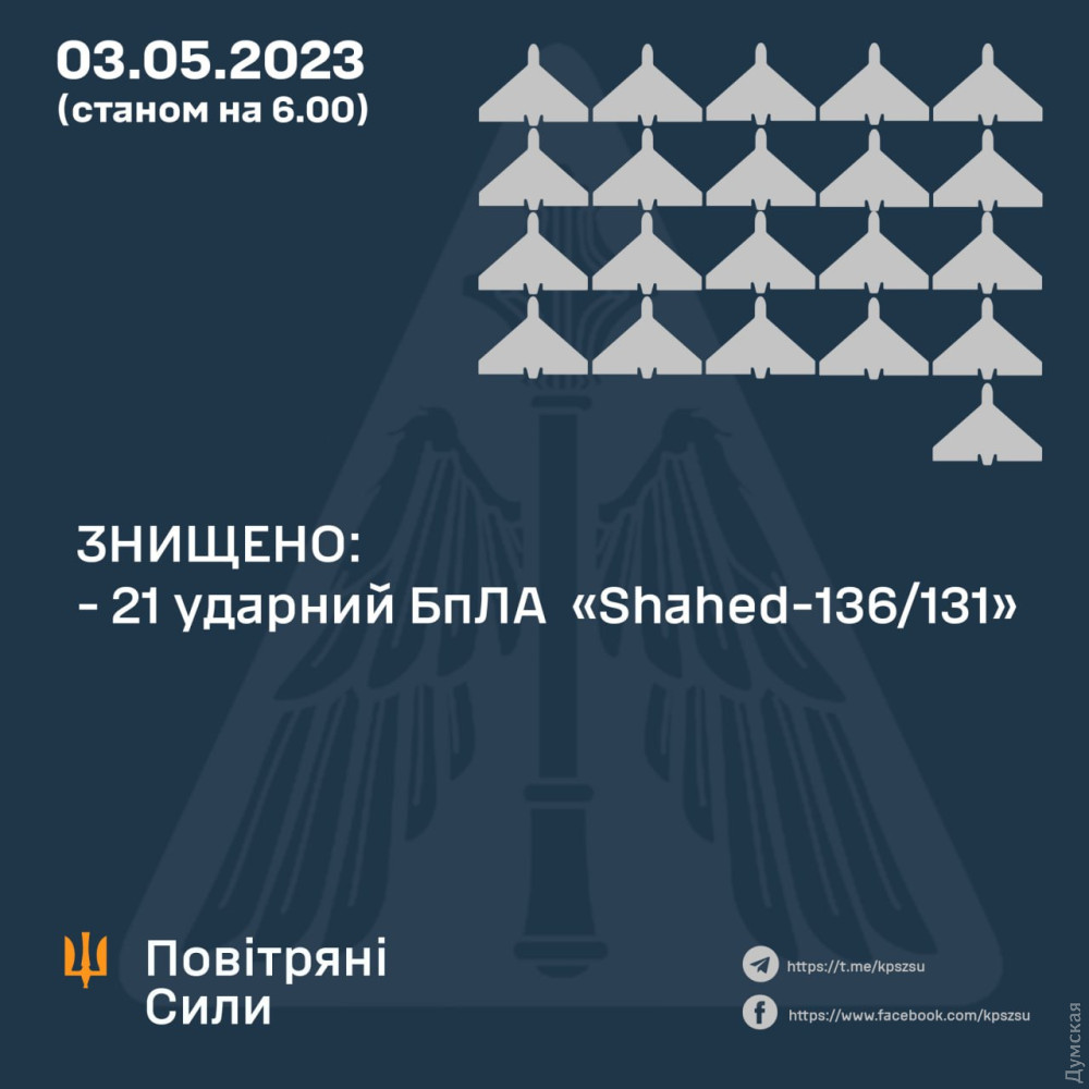 21 із них вдалося збити, повідомили в Повітряних силах Збройних сил України.